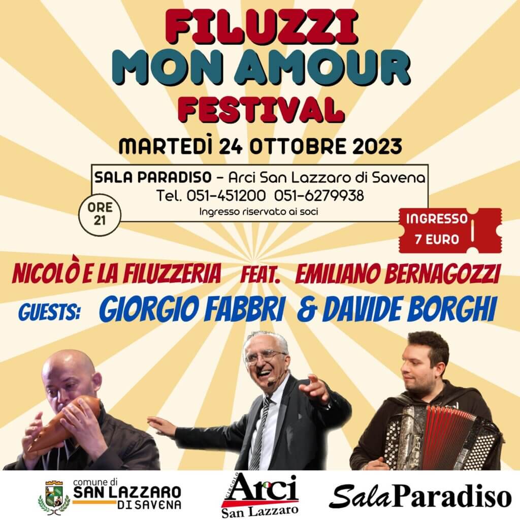 “Filuzzi Mon Amour Festival” è lieto di annunciare una straordinaria serie di serate musicali che celebreranno la cultura e la tradizione bolognese presso la Sala Paradiso, Arci San Lazzaro. Organizzato da Nicolò Quercia e la Filuzzeria, un progetto dedicato alla riscoperta della filuzzi bolognese, questo festival offrirà cinque indimenticabili serate di musica e condivisione.