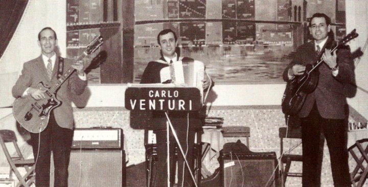 Trio Carlo Venturi. Anno 1965. Dancing “Nuova Luna” di Tavernelle. Nino Bonora al basso e Giulio Bonora alla chitarra.