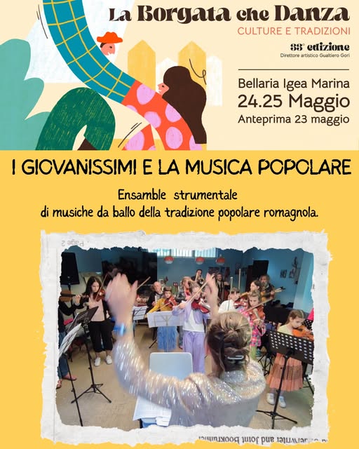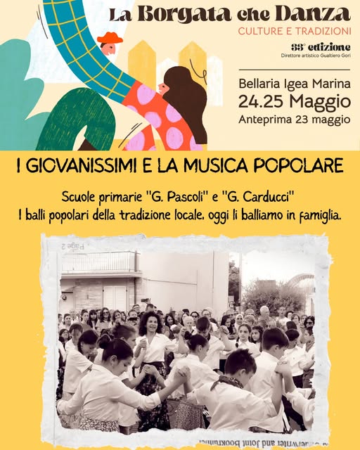 L’incontro delle giovani generazioni con la musica tradizionale costituisce uno dei principali motivi ispiratori del programma artistico-culturale della Borgata che danza. Grazie al fondamentale supporto dell’Associazione culturale L’Uva Grisa di Bellaria Igea Marina, nei mesi precedenti la manifestazione, nelle scuole del paese, si realizzano percorsi didattici differenziati sui temi della musica strumentale, dei canti e dei balli della tradizione locale.