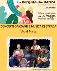 In collaborazione con l’Associazione di Promozione Sociale “InArte. Projects of Cultural Integration” di Forlì, che gestisce la Scuola comunale di musica del Centro Culturale “Vittorio Belli”, quattro anni fa si è costituito, con la direzione di Ilaria Mazzotti, direttrice della Scuola, un Ensemble strumentale dedito all’esecuzione dei repertori da ballo, a cui si è aggiunta, dallo scorso anno, una piccola formazione corale di canto della tradizione orale; entrambi saranno presenti nella serata di anteprima (venerdì 23 maggio ore 21:00).